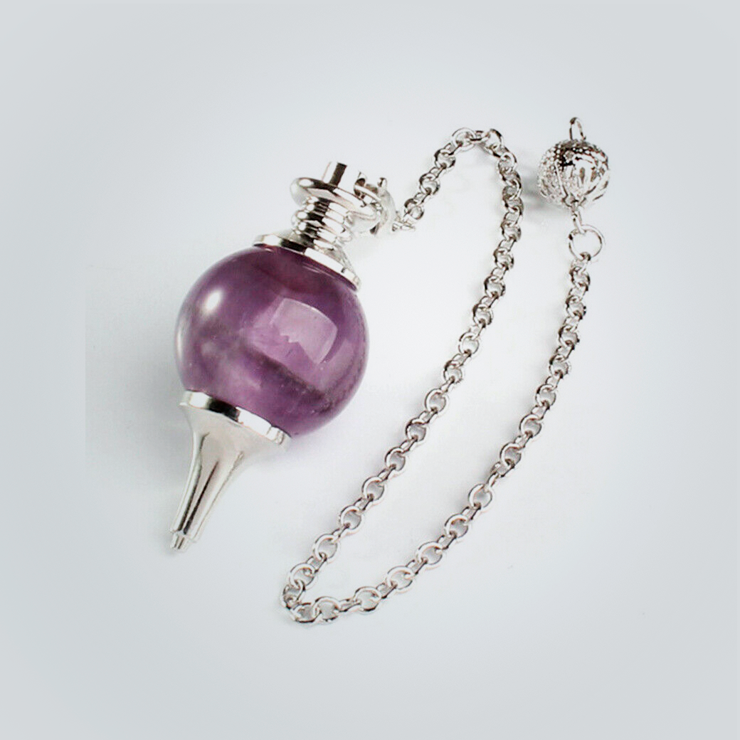 PENDULO DE AMATISTA CON PUNTA Y CADENA DE METAL