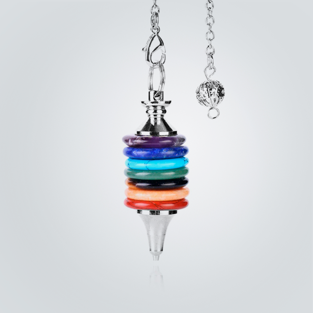 PENDULO DE 7 COLORES CUARZO CON PUNTA Y CADENA DE METAL